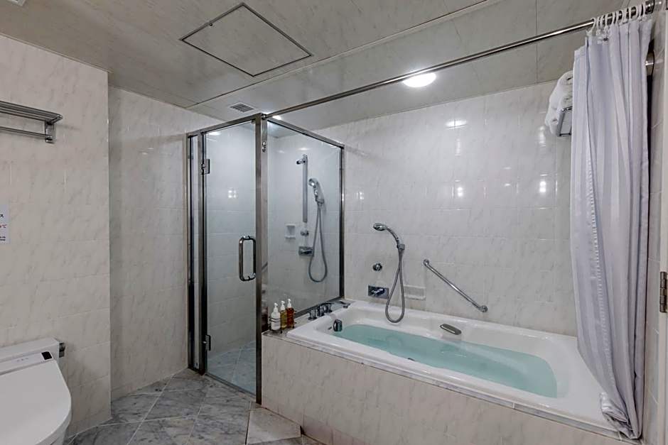 Features 2 single beds and 1 extra bed. Spacious room offering views of Sakurajima Volcano and the sea. Room is equipped with an LCD TV with satellite channels, a fridge and a safe.